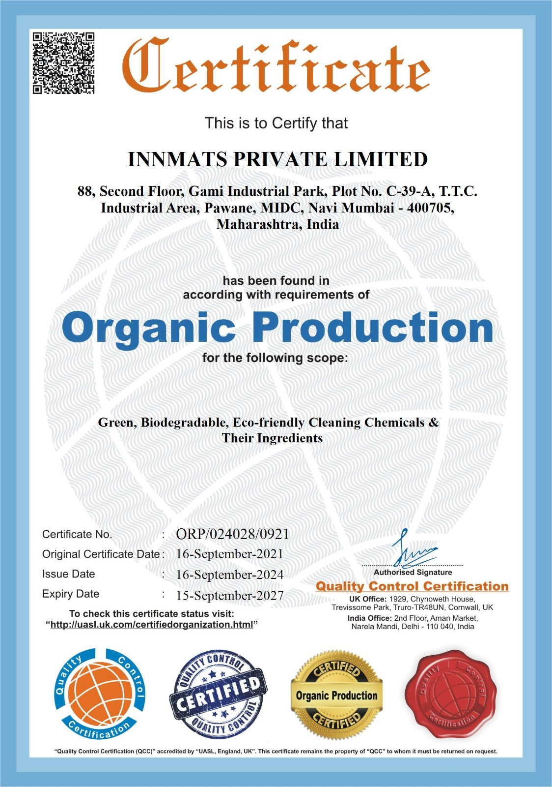 Organic Production for the following scope: Green, Biodegradable, Eco-friendly Cleaning Chemicals & their Ingredients
